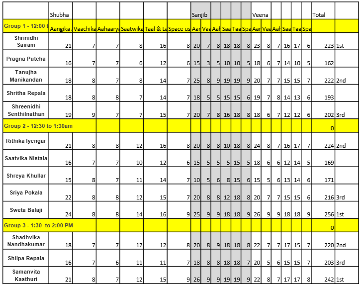 Here is the results of all participants. We hope this ananlysis of their art form would help them to better their art form. Please use this as a feedback information to improve.